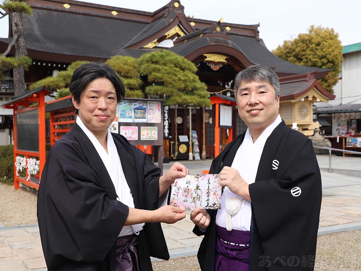 阿倍王子神社(大阪市阿倍野区阿倍野元町)と阿部野神社(北畠3)が4月1日から、期間限定のコラボ御朱印「阿倍倍野のおいなりさん二社まいり御朱印」を授与している。