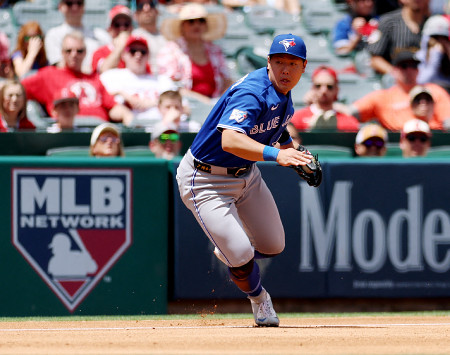 ブルージェイズの岡本はエンゼルス戦に7番三塁で出場し、9回に3試合ぶり安打となる左前打を放って3打数1安打、1四球だった。ブルージェイズは3―7で敗れ、連勝は3で止まった=22日、アナハイム 【AFP時事】