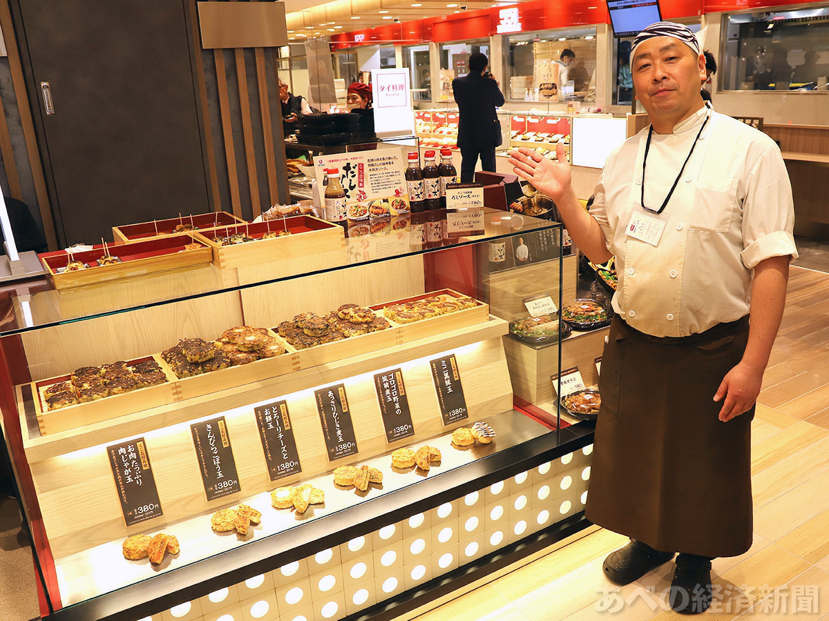「大阪あべの たこつぼ」はミニお好み焼きを販売