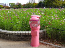 同園のコスモス畑は、面積約2000平方メートルの「ライフガーデン」に13品種・約2万株を栽培。開花に合わせて開催中の「コスモスウイーク」では、ピンク色のポストやドアのほか、ぬいぐるみを撮影できる「ぬい撮り用フォトスポット」も設置している。