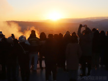 ヘリポートで初日の出の鑑賞した女性2人組は「初日の出を初めて見てきれいだった。広島から来たかいがあった」と話していた。