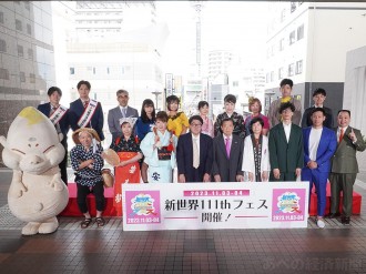 スパワールド世界の大温泉(大阪市浪速区恵美須東3)前ピロティで8月23日、吉本興業と在阪民放5局がタッグを組み9月17日~19日に開催する東日本大震災復興支援イベント「YOSHIMOTO WONDER CAMP KANSAI(よしもとワンダーキャンプ関西)」の会見が行われた。