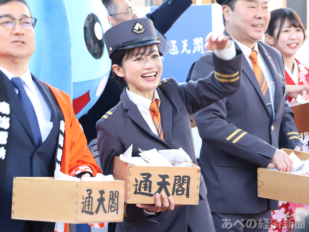 「通天閣節分福豆まき」に参加した斉藤雪乃さん