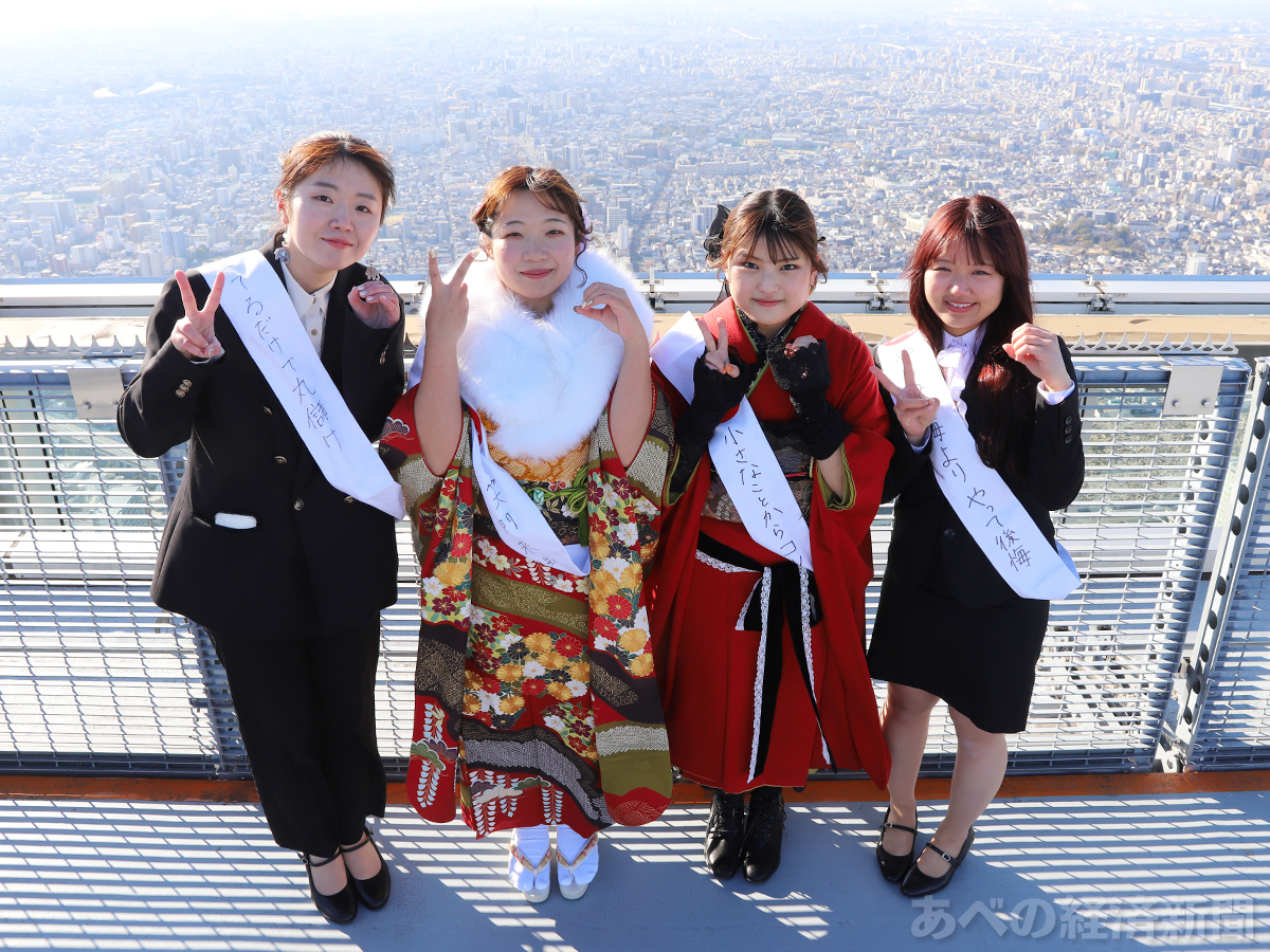 あべのハルカス(大阪市阿倍野区)で成人の日の1月12日、20歳を迎えた参加者が展望台までの階段を歩く恒例イベント「第12回 ハルカスウォーク ハタチのチャレンジ」が行われた。