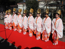 天王寺動物園(大阪市天王寺区)で1月6日、今宮戎神社(浪速区)の「十日戎(えびす)」の福娘が同園に福笹(ふくざさ)を贈る贈呈式が行われた。