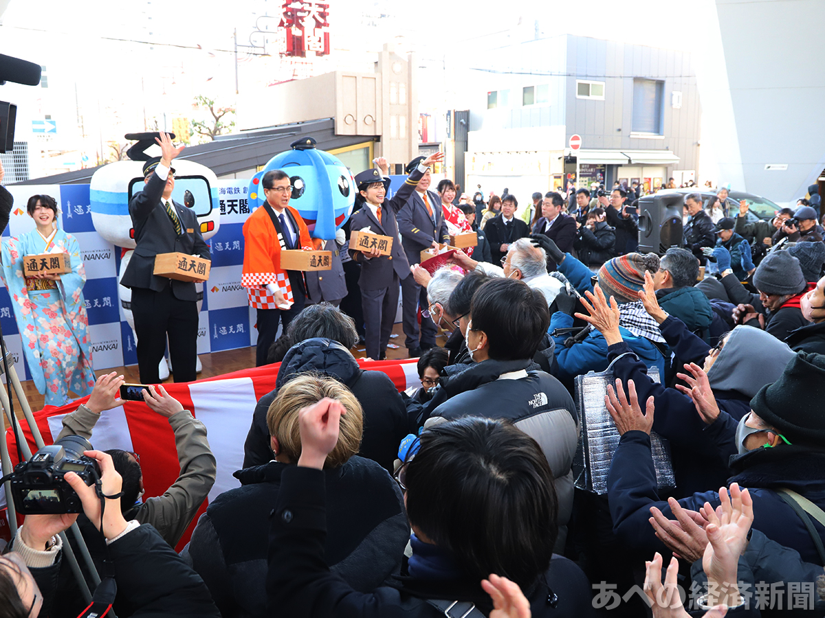 通天閣で恒例「節分福豆まき」
