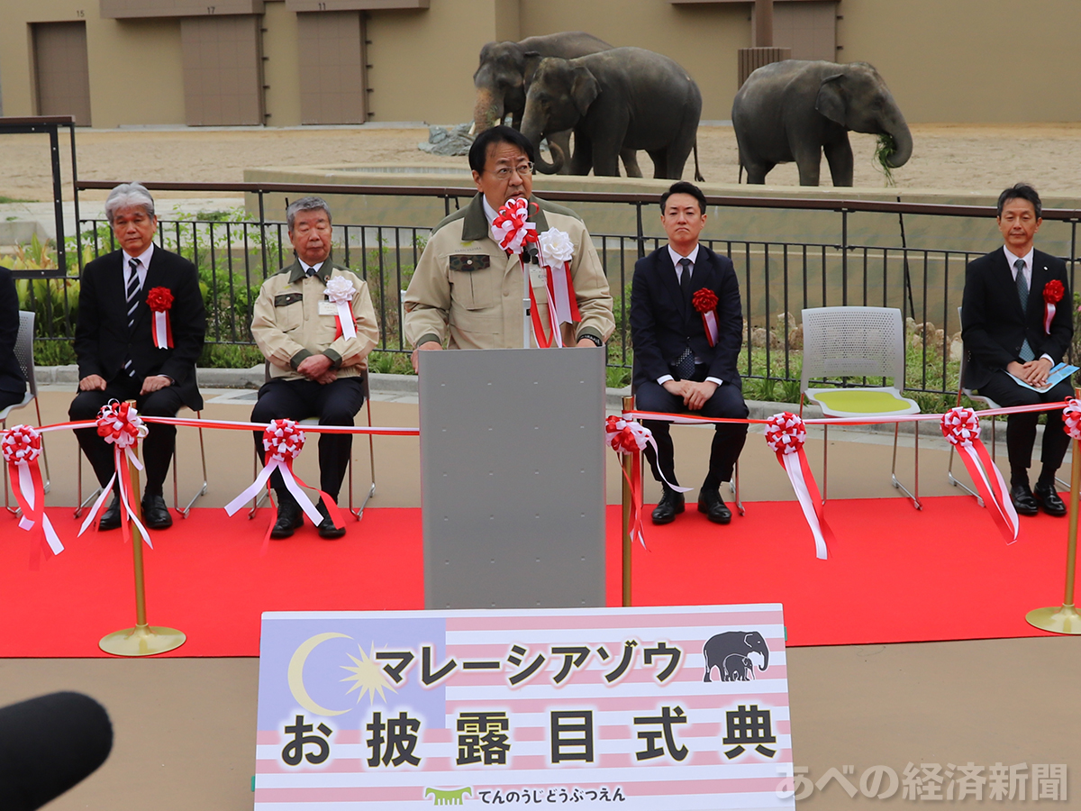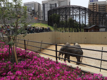 天王寺動物園(大阪市天王寺区)で4月21日、マレーシアゾウ3頭が一般公開された。