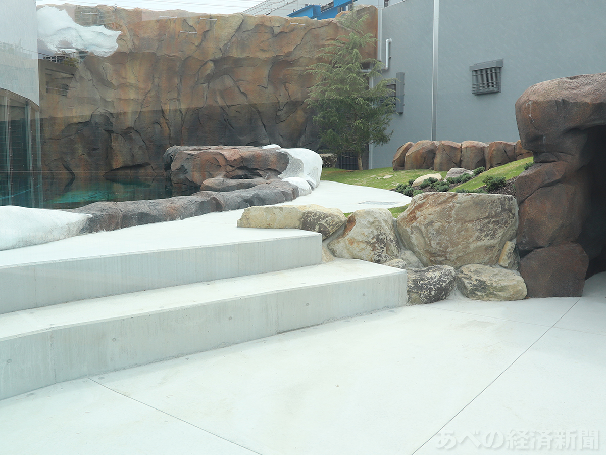天王寺動物園(大阪市天王寺区)が4月24日、新たなホッキョクグマ飼育施設「ポーラーベアコースト」を報道陣に公開した。