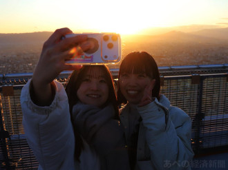 あべのハルカス(大阪市阿倍野区)の展望台「ハルカス300」で1月1日、「初日の出観賞特別営業」が行われた。