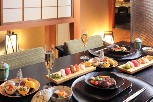 和牛フィレ肉の鉄板焼をメインに、茶碗蒸しやにぎり寿司など人気料理を取り入れた会席です。落ち着いた設えの店内で、ゆったりと寛ぎながらお食事を楽しみたいという方におすすめです。