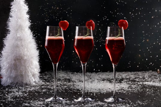 シャンパンにベリーを合わせたクリスマスシーズンにぴったりの色鮮やかなカクテルです。